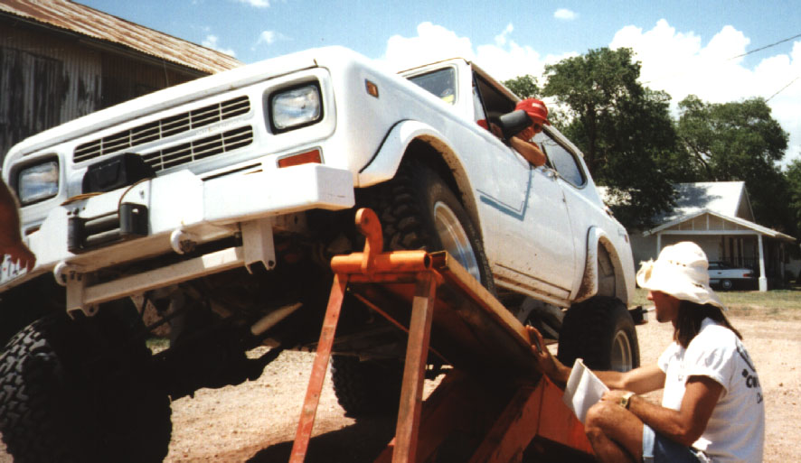 This picture shows the reverse shackle suspension system on a 1980 Scout II owned by Mark Drake(owner of Scout M.A.D.ness). The distance up the ramp was measured at 79.75 inches.